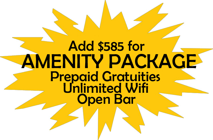Featured cruises are per person based on double occupancy and are subject to availability. Package rates are for inside cabins, include port & government fees, and economy class air from select air gateways unless specified. Airport taxes and ground transportation is additional. NCL air package includes roundtrip economy air and ground transportation. For more details, please visit https://www.ncl.com/ca/en/air-service-standards NCL amenity packages above include service charges for open bar and specialty dining. Offers may be removed without notice and our lowest price guarantee is based on cruise line terms and conditions.