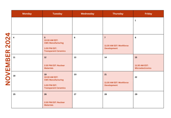 - Nuclear Materials: Tuesdays at 2:30 p.m. starting Nov. 12