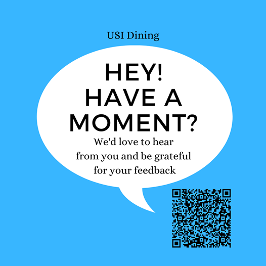 Students, take the USI Dining satisfaction survey for a chance to win $250 in Munch Money! Use the link to take the survey or stop by their table in the breezeway between UC East and West. We will be there from 10 am-2 pm and if you complete the survey at their table you will receive a candy bar! You can take the survey until Saturday, October 31. Don't miss you chance to win!