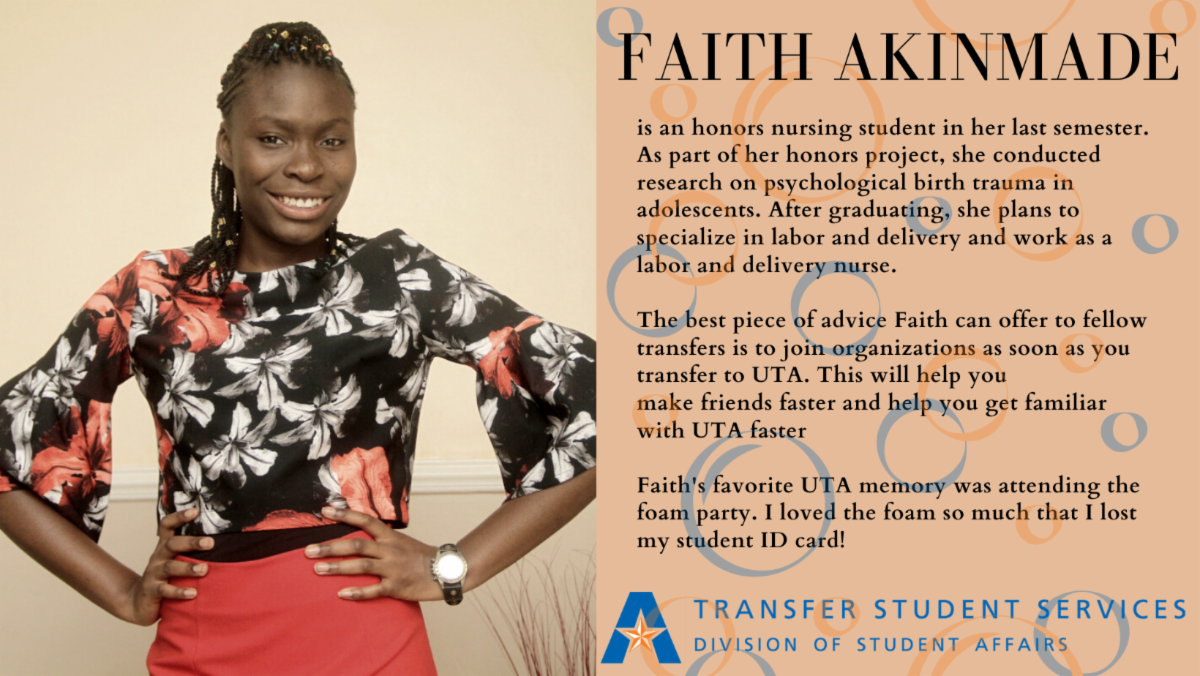UTA's Transfer Nation is committed to serving transfer students by helping them prepare for rewarding academic experiences, assisting transfer students as they transition to UTA, and promoting their progress toward graduation.