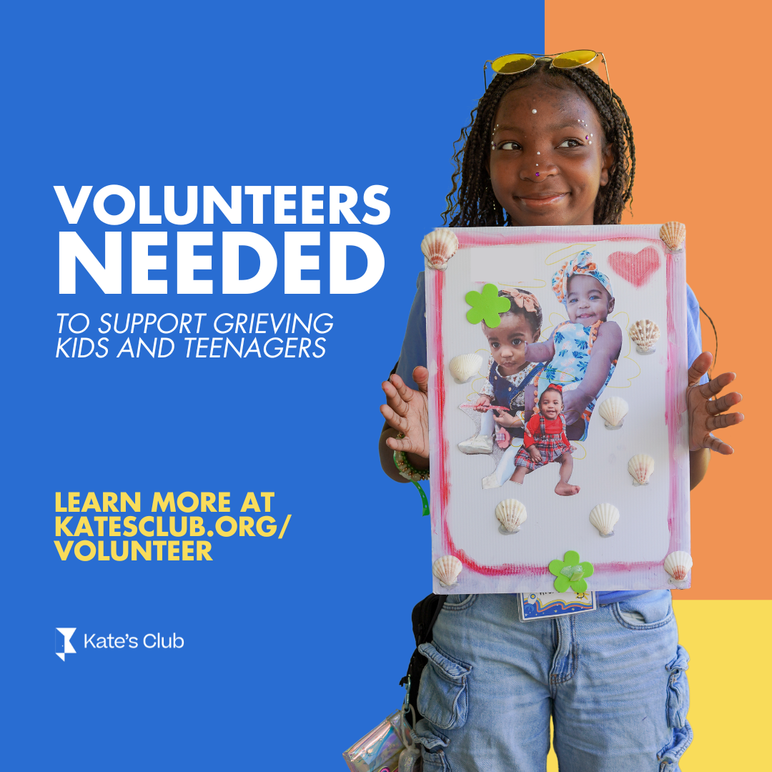 Kate’s Club is a nonprofit organization that empowers grieving children, teens, young adults, and their families. We are currently seeking compassionate and dedicated volunteers to support our monthly Family Clubhouse Day.