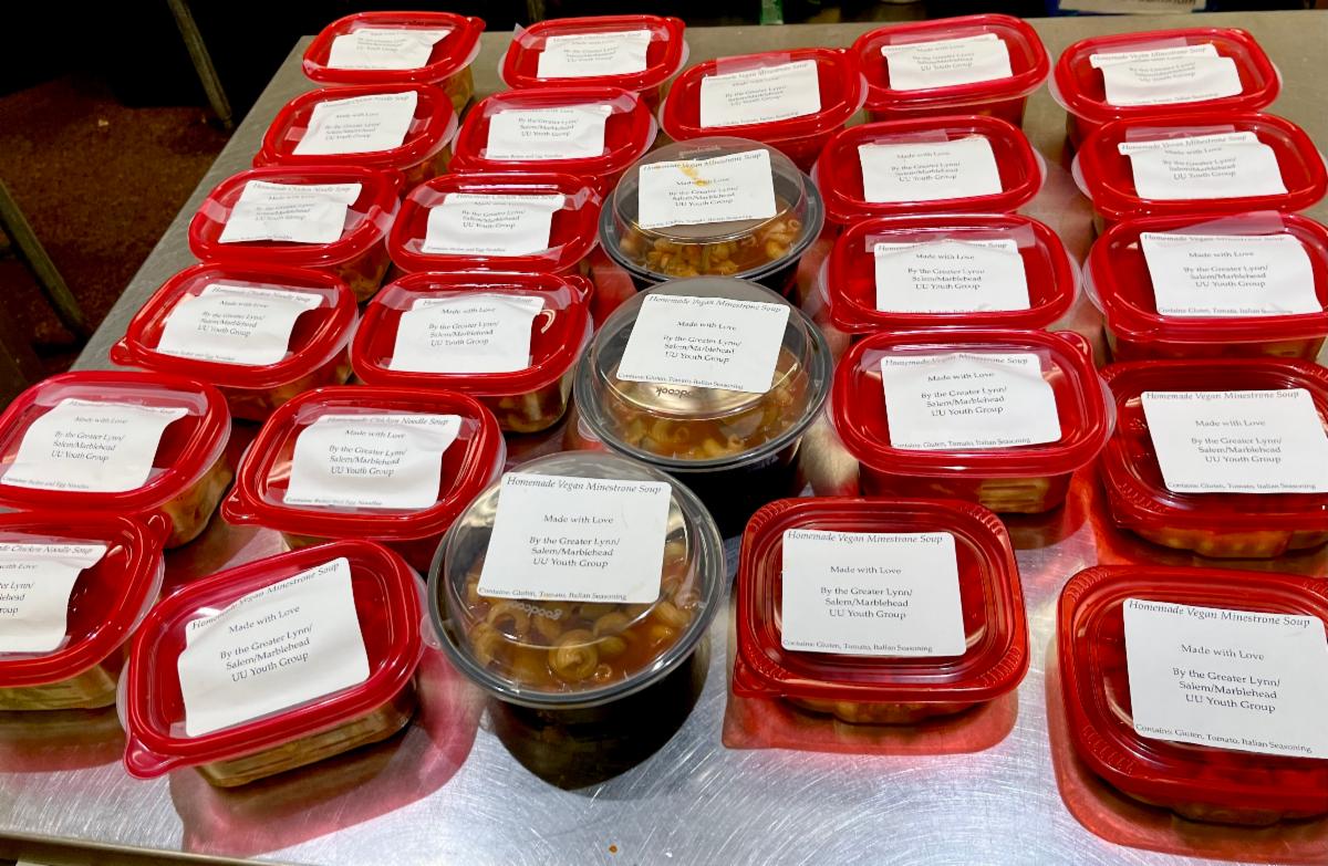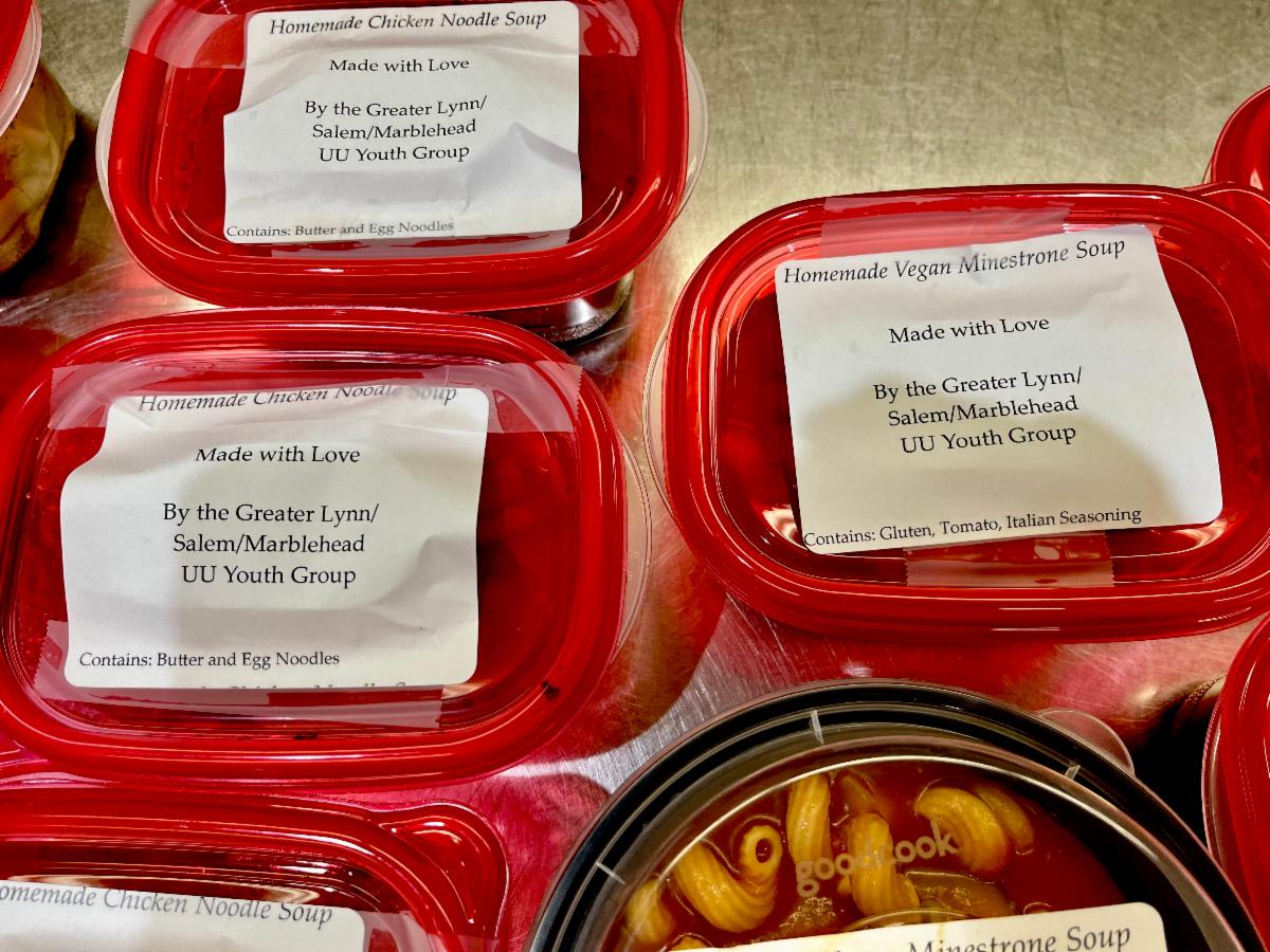 | | On Sunday our amazing Youth Group cooked up homemade vegan minestrone and chicken noodle soups to stock the church freezer for anyone in need. They also assembled 100 dinner bags to add to the 100 already assembled in the morning faith development program. These were delivered with love on Monday morning to My Brother's Table. | | |