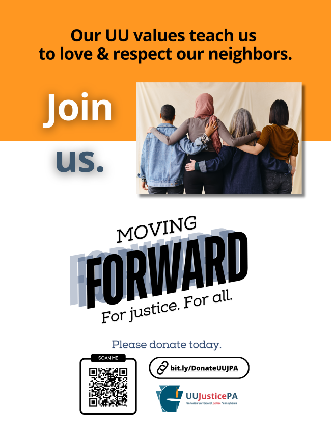 UUJusticePA is in the 6th week of their annual individual end of year pledge drive.