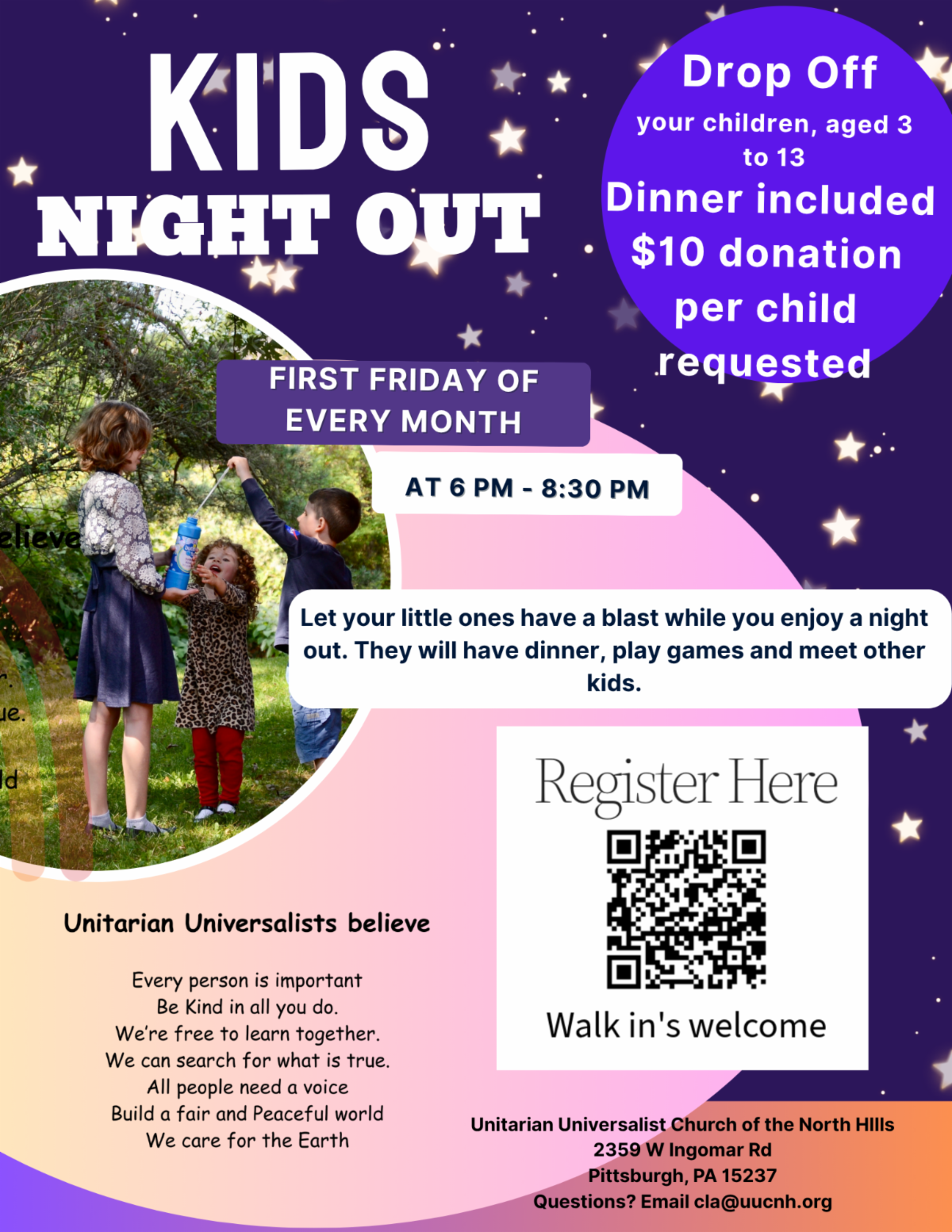 | | | | Kid's Night Out - Next Friday | | Cherishing the Connectedness of All Things | |