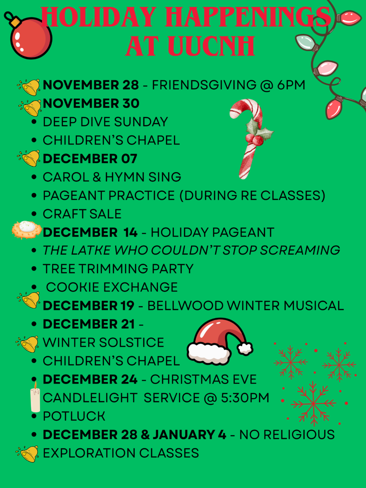 Religious Exploration times - Sunday, Tuesday and Wednesday afternoon
