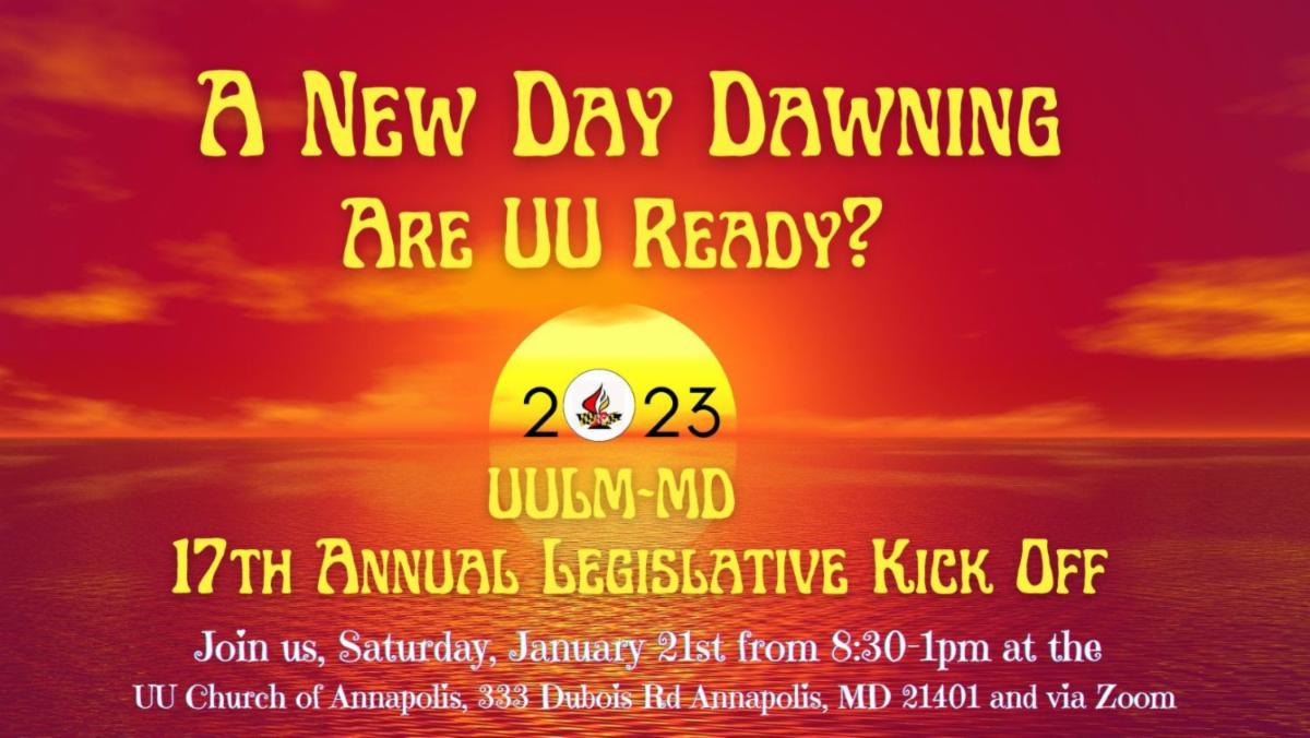If you’d like to learn about ways to engage at the state level — from monitoring legislation, making calls, writing letters, visiting Annapolis during the session, and more — you are invited to participate in the UU Legislative Ministry of MD “New Day Dawning “ kickoff session this Saturday, January 21, from 9 a.m. — 1 p.m. (Note - you can participate in person or online. Registration and more information at the following link https://www.uulmmd.org/ .)