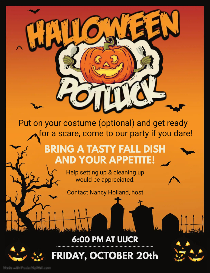 This year we're inviting contributions of bread (or muffins, or rolls), apples, or other fruit that we can use in our ritual of setting a table big enough for all! (And in our "bread swap," we'll each get to take home some bread!) We welcome all to this special service! If you have questions, please be in touch with Rev. Sue or the UUCR office.