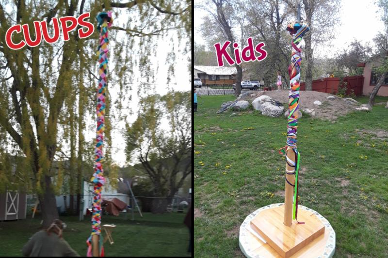 I participated in my first Beltane Festival, learning the weaving dance of the Maypole (pictured) with our seasoned Covenant of UU Pagans (CUUPS). Three days later, the UUFD kids danced the Maypole in the church yard during Sunday classes (pictured). The colorful satin ribbons wove in a much less orderly fashion than the aforementioned ritual, the result more tangled yet still beautiful. Let go and enjoy!