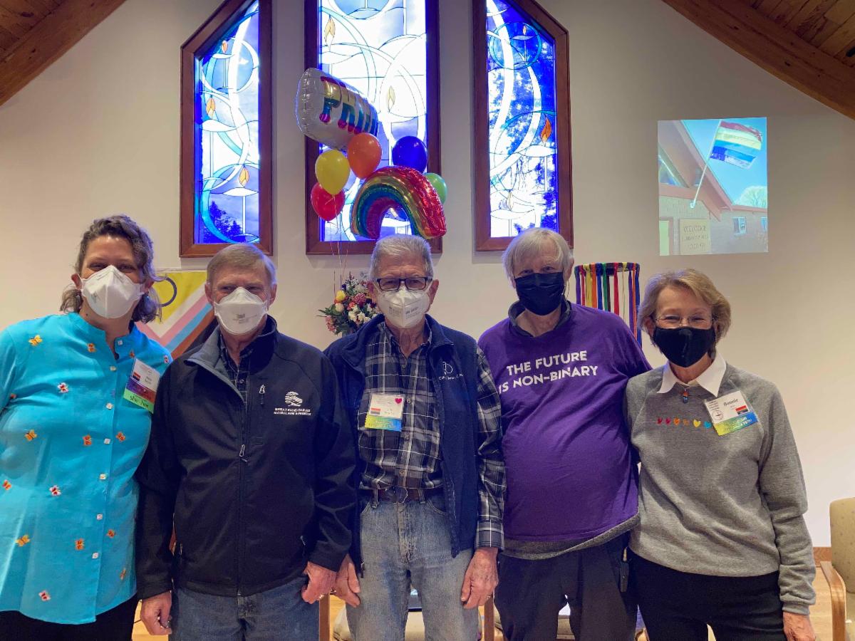 Thanks to the LGBTQIA+ team, pictured here, who organized a well-received worship on Oct. 24 that featured Juniper Meadows speaking about the complexity and beauty of the transgender experience. Missed it? Watch online here. From left to right: Anna Royer, Don Spangler, Jim Brooke, Robert Bridges, Bonnie Miller.