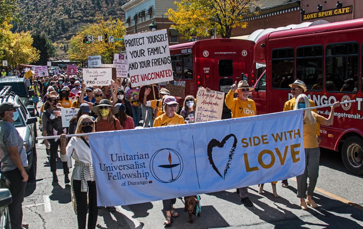 UUFD showed up with love and yellow t-shirts to the Women's March on Sunday, Oct. 3 in downtown Durango.