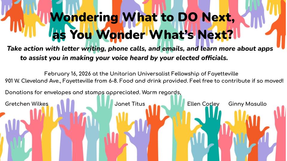 Due to the still icy and dangerous conditions of the roads around UUFF and our parking lot, we will be closed again this Sunday, February 1st, 2026!