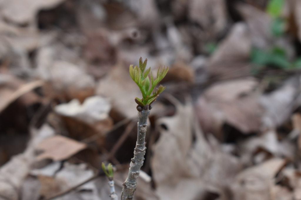 White ash (Fraxinus americana) sapling starting to leaf out.