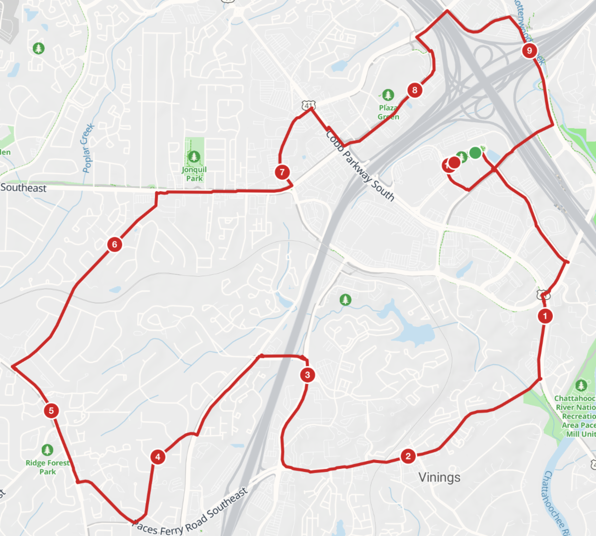 The Saturday route is below: