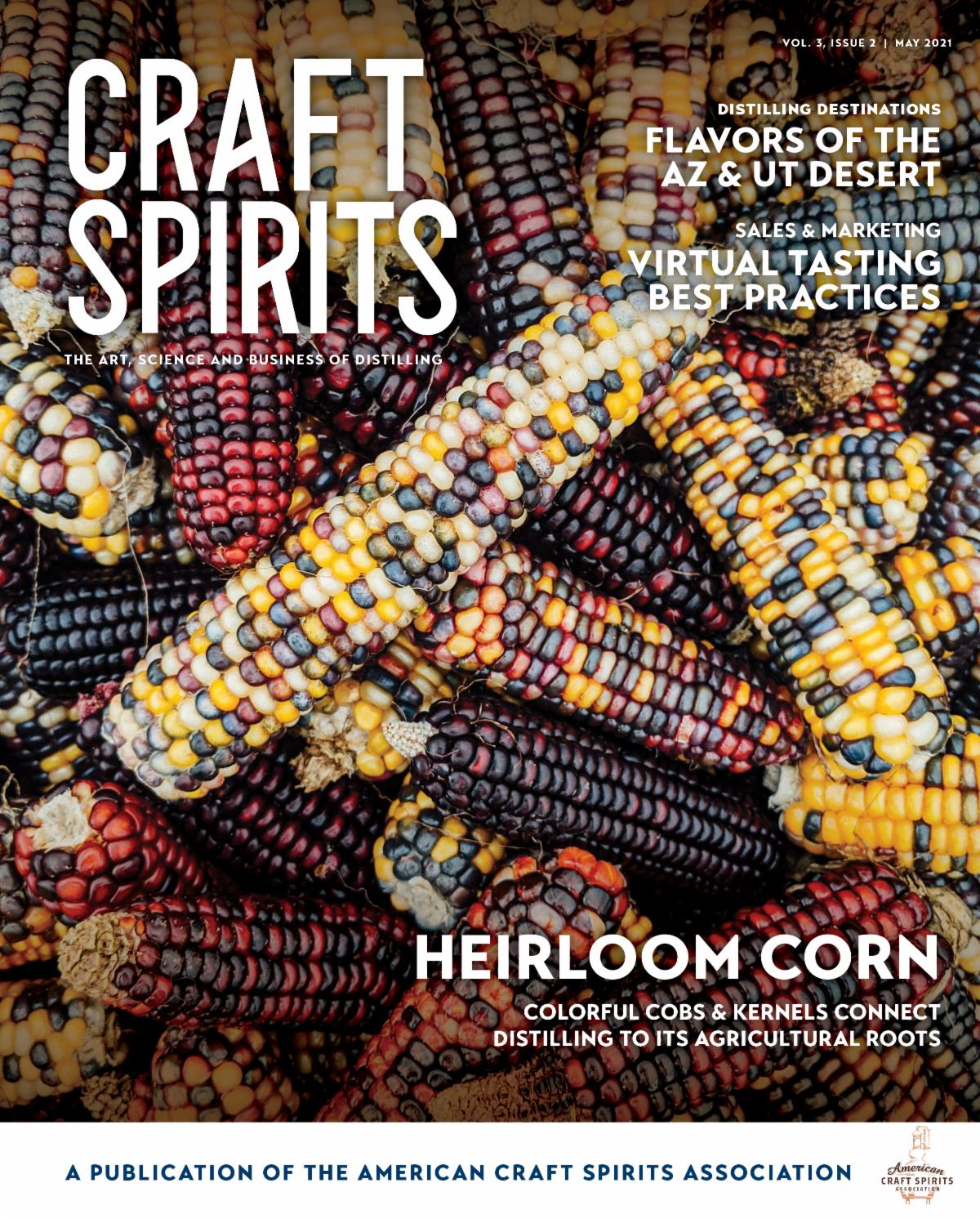 The American Craft Spirits Association proudly presents the May 2021 issue of CRAFT SPIRITS magazine. In our cover story, distillers around the nation weigh in on their adventures with heirloom corn. As our editor in chief writes, "Many, perhaps most, of you don’t work with heirloom corn (or even make whiskey, for that matter), but the piece is about all of you. That’s because craft spirits, regardless of what fermentable substrate you use, is an heirloom industry."