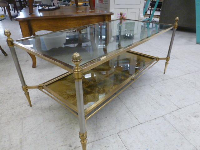 These tables are solid brass and stainless steel construction with clear glass top surfaces and eglomise glass below.--Truly spectacular!