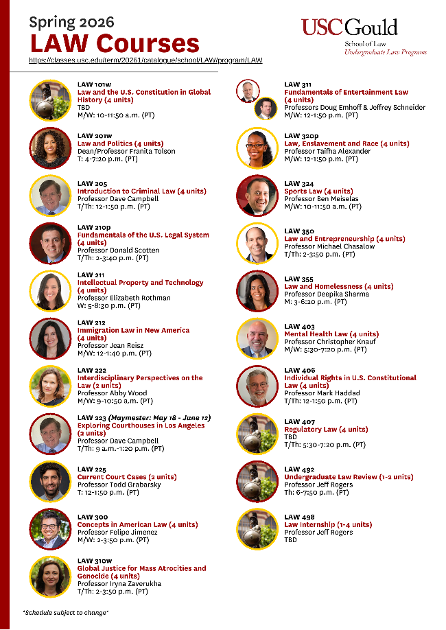 The Spring 2026 schedule of classes is now live. Explore our full lineup, including unique law courses designed to expand your perspective and strengthen your critical thinking skills.