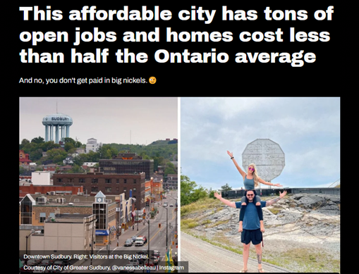 Lisez ce récent article ICI (en anglais seulement) et partagez-le avec vos amis et les membres de votre famille, qu’ils habitent déjà à Grand Sudbury ou que vous aimeriez les encourager à y déménager!