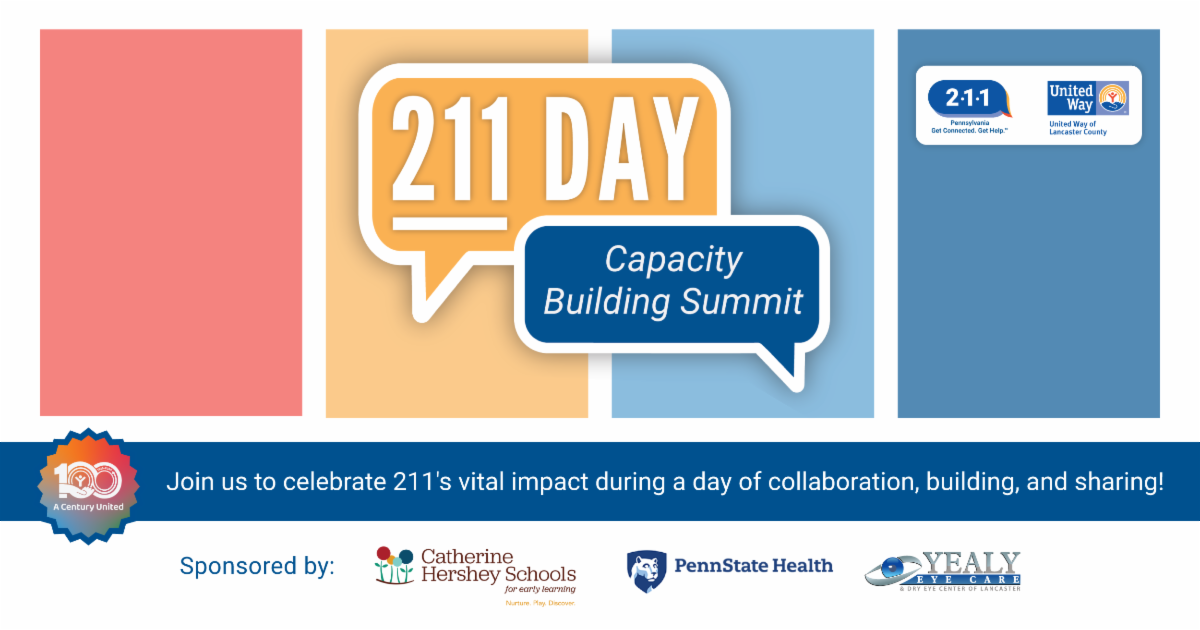 Mark your calendar for Tuesday, February 11th, 2025, and join us at the DoubleTree Resort, 2400 Willow Street Pike—our exciting new location for this year’s highly anticipated 211 Day: Capacity Building Summit!