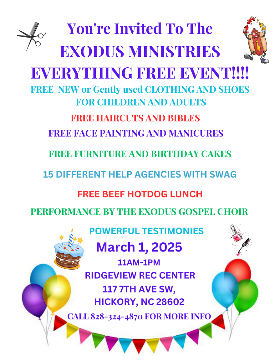 Exodus Homes, a Catawba County United Way funded partner, has a comprehensive array of services to meet the physical, emotional and spiritual needs of its residents. Exodus Homes currently has 73 beds with 9 program locations, according to its website - https://www.exodushomes.org/. Its key programs include supervised independent living, prison ministry and post incarceration aftercare, family preservation and the Exodus Works vocational training program.