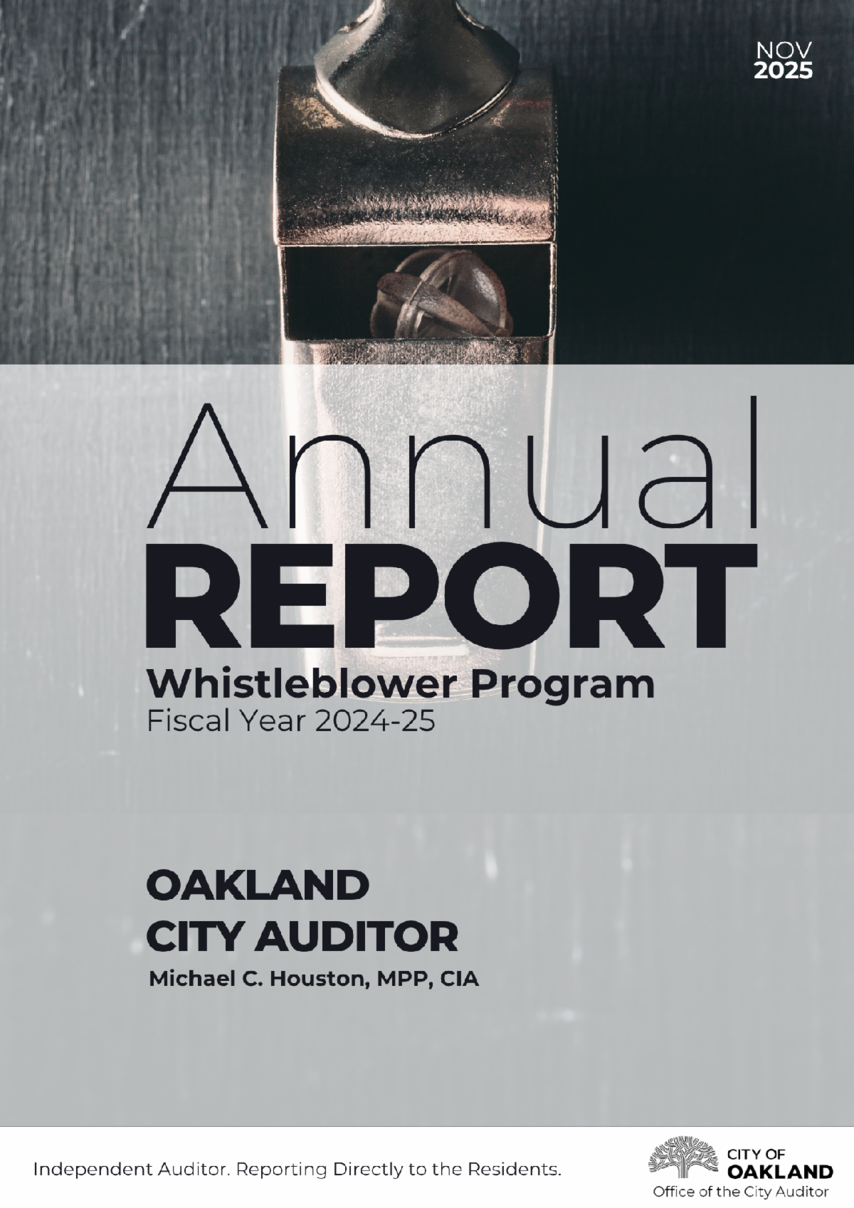 Oaklanders, and City employees especially, have special insight into the organization, and are uniquely positioned to bring issues forward that others may not notice—just as our Whistleblower Program Annual Report demonstrates!