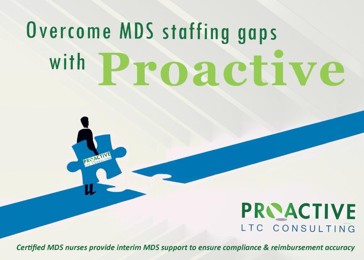 Proactive’s nurse, MDS, therapist, and operations consultant team includes SNF experts with backgrounds as DON, Operations Director, Clinical Reimbursement Director, Clinical Trainer, Surveyor, and Compliance Officer. Contact us to learn more about support options. |