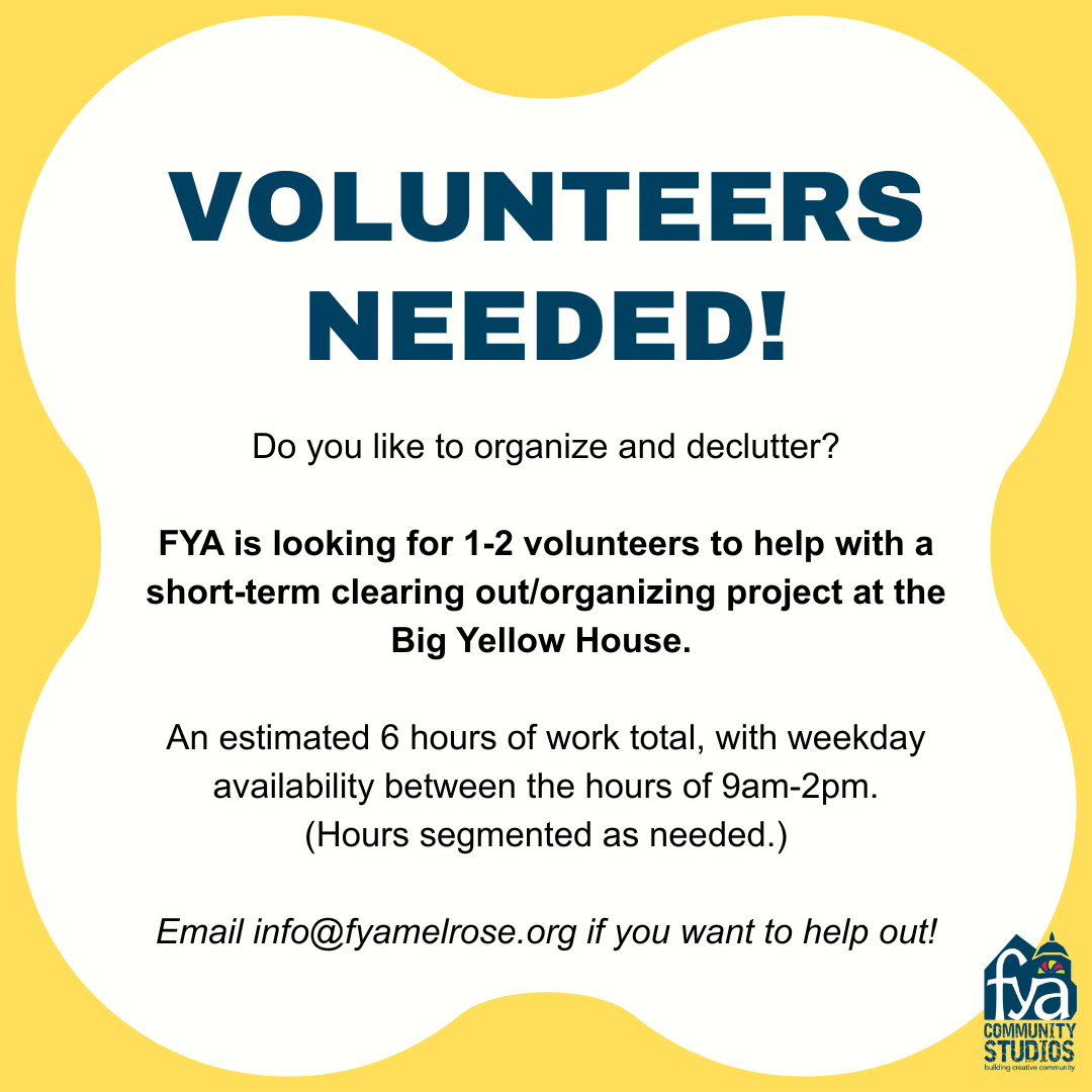 | Email info@fyamelrose.org if you want to help us complete a small organizing project at 647 Main St.! | | |