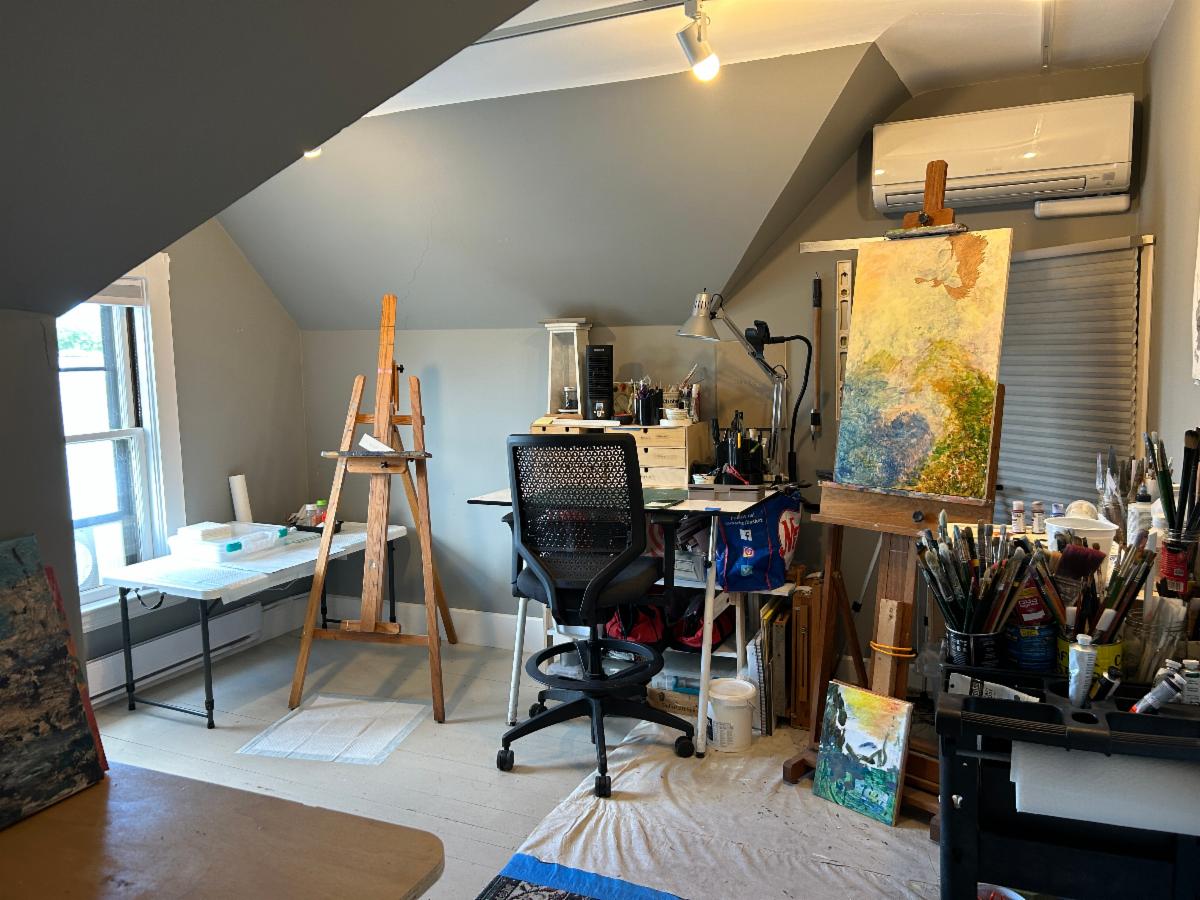 Join one other artist in a shared studio space for two. A sweet little 120 sqft spot at the top of the house with one north facing window that sheds quite a lot of light! $280.50/month
