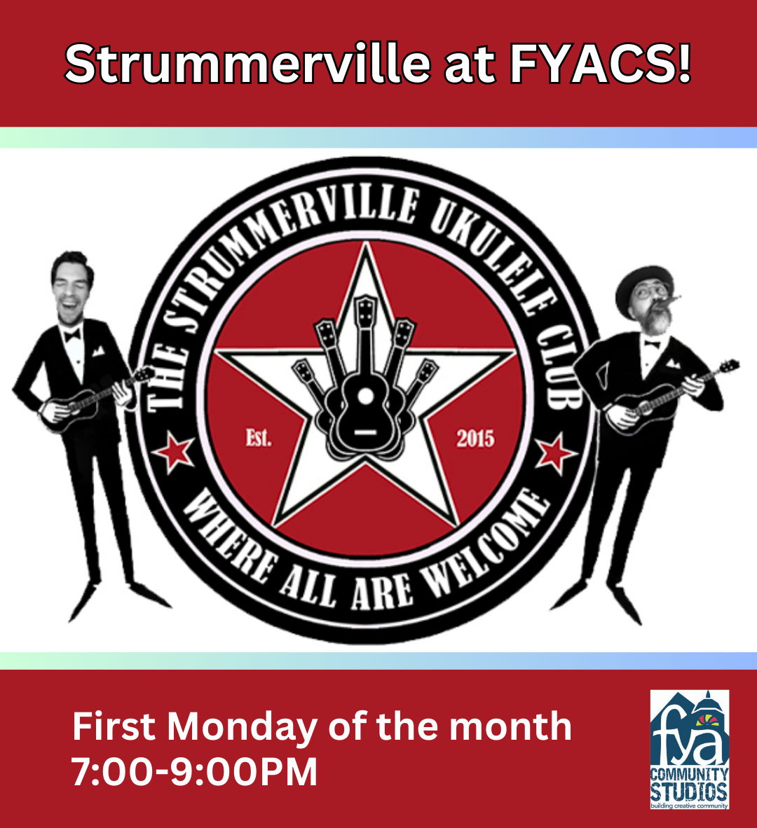 The Strummerville Uklele Club will be hosting a jam session here at FYA, come make some music!