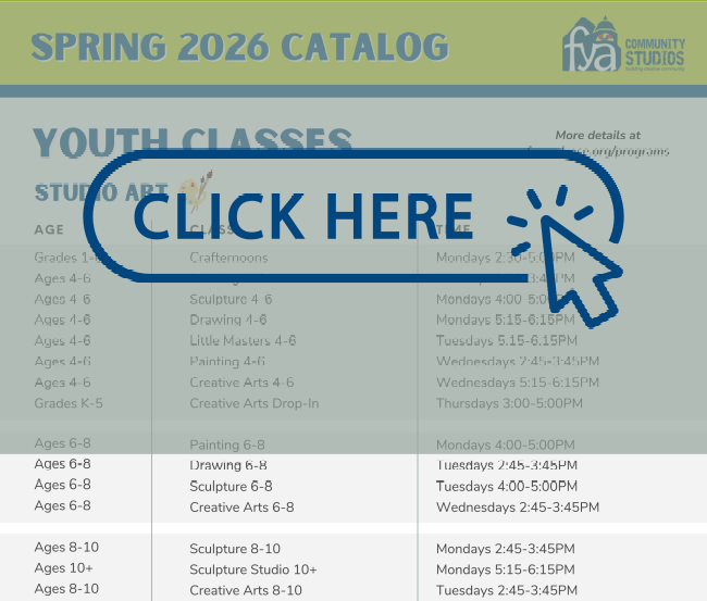 View our Spring Course Catalog for Studio and Ceramics classes! The Spring Session runs 6 weeks, April 27th-June 5th.