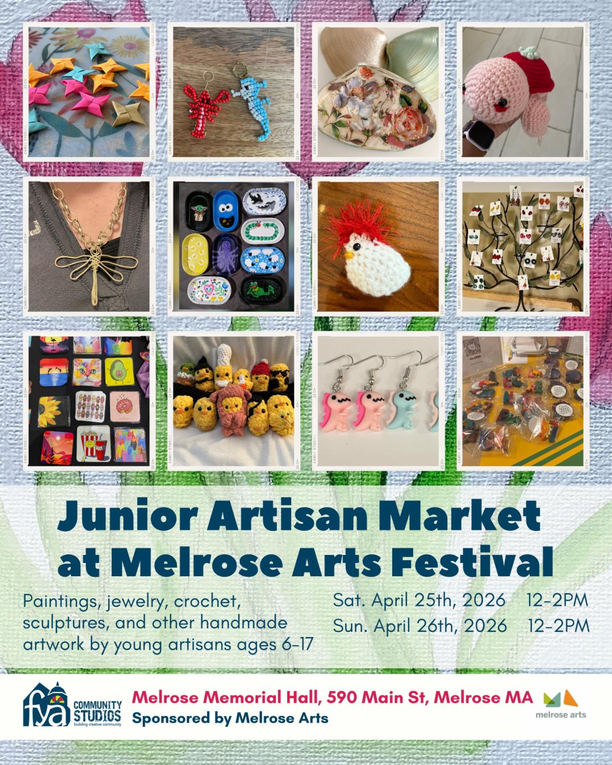 Paintings, jewelry, crochet, sculptures, and other handmade artwork by young artisans ages 6-17!