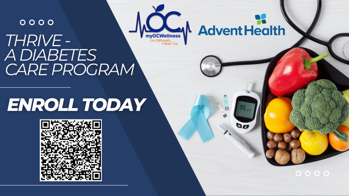 Orange County Government, AdventHealth, and Cigna have joined forces to offer the Thrive program - a Diabetes Care Management program. The goal of Thrive is to motivate participants to effectively manage their diabetes through evidence-based education and healthy lifestyle support from an expert, multidisciplinary care team.