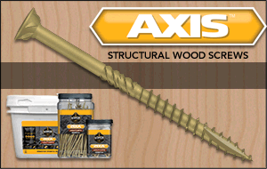 The AXIS™ Structural Wood Screw is designed to take wood screws to an entirely new level! Every facet has been evaluated and improved (patents pending).