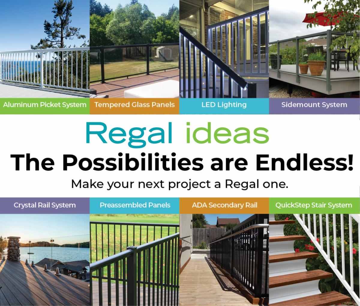 Innovation runs deep at Regal Ideas. Over 30 years ago, the company opened its doors with one product line, Regal Aluminum Railing. Today, Regal Railing is the largest selling brand of aluminum railing in North America. With a wide range of innovative products designed to make life easier for homeowners and contractors alike, Regal Ideas is an industry leader on both sides of the border and across the globe.