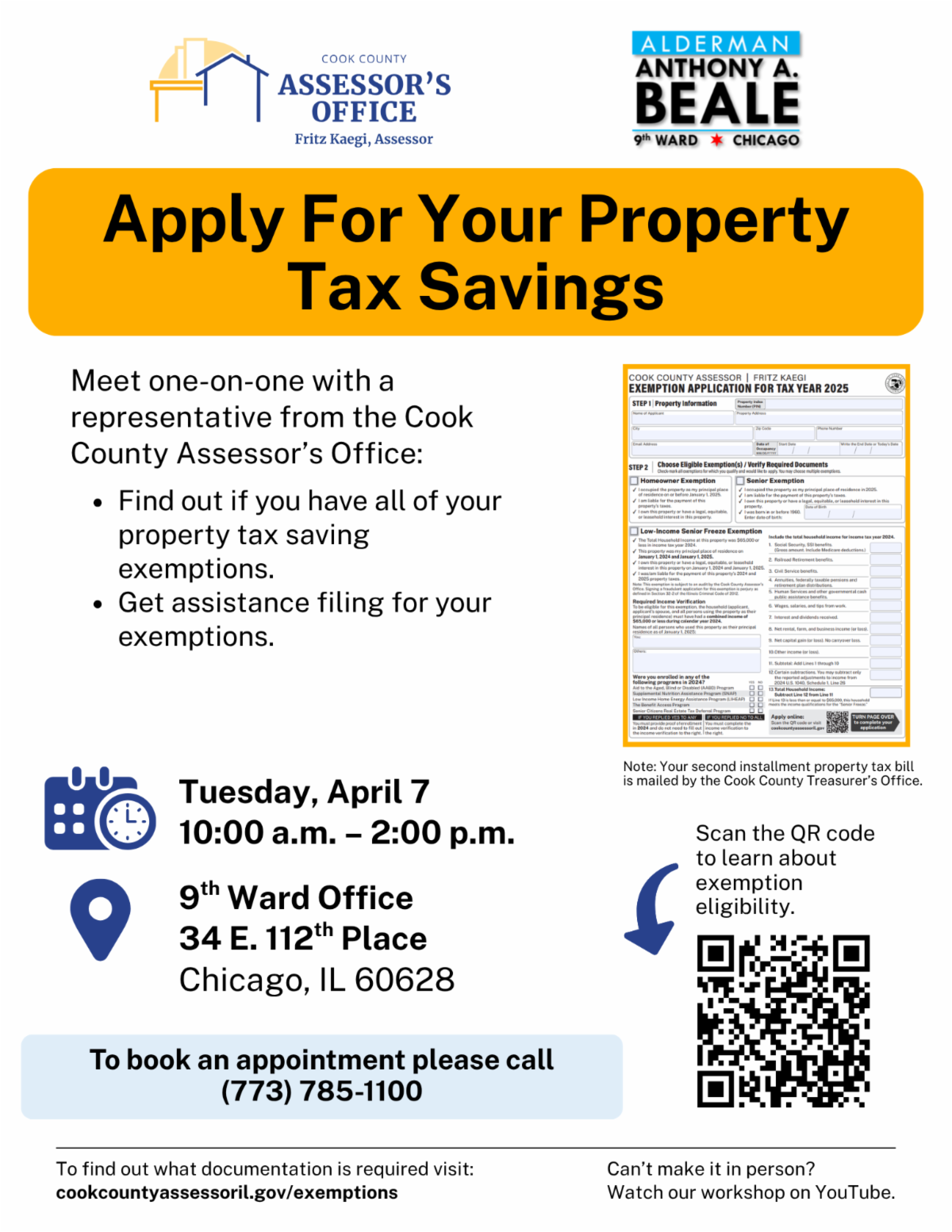 **PROPERTY TAX EXEMPTION WORKSHOP BY APPOINTMENT ONLY**
