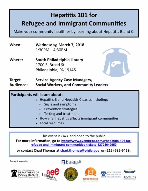 Hepatitis B Foundation, along with multiple Hep B United Philadelphia partners will conduct a free viral hepatitis education session on March 7th. Please share with your groups, all are welcome!