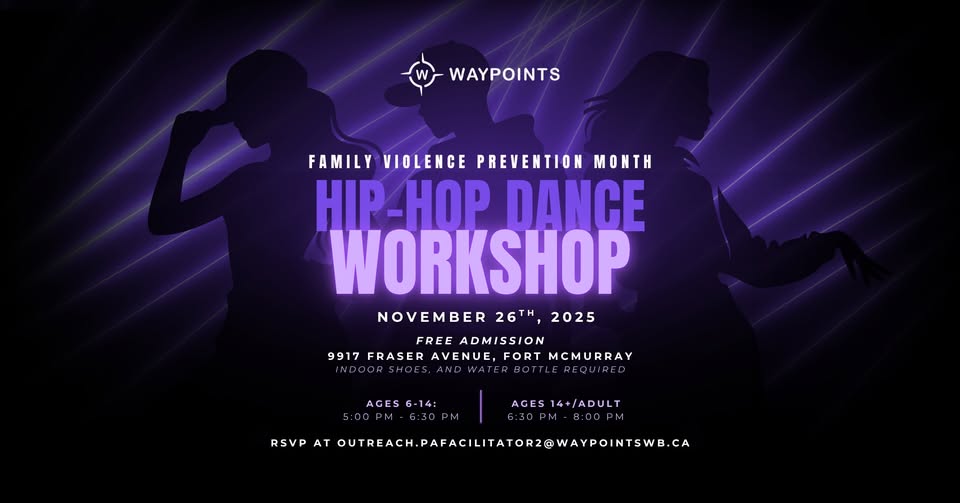 Join Waypoints for a high-energy hip hop dance workshop led by our Public Awareness and Training Facilitator, Dominic, who brings 18 years of experience and training across hip hop, tap, jazz, and lyrical dance genres.