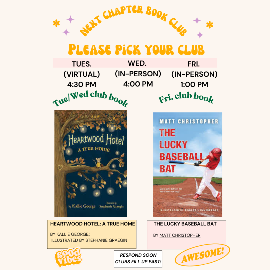 The Next Chapter Book Club is a community-based book club that welcomes adolescents and adults with intellectual & developmental differences to read, learn, make friends, and have fun. Anyone 16 and over can participate, no matter their reading level.