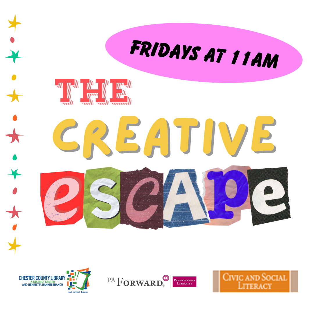 Join us every week for The Creative Escape, a laid-back, self-paced crafting experience designed for adults. We offer a different craft each week. No registration required. All materials supplied. Ages 16 years and up.