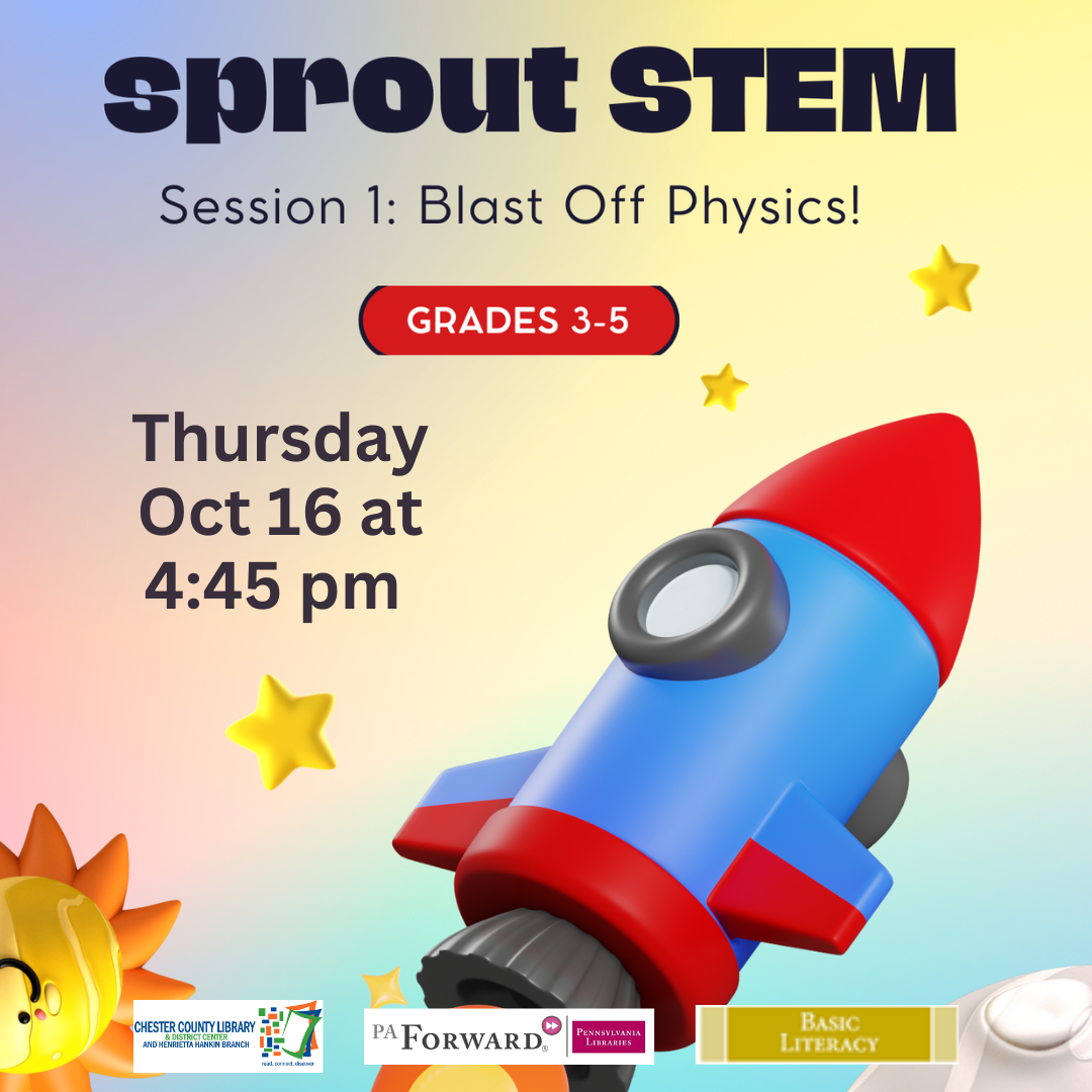 In this hands-on STEM workshop, students will design and test paper rockets while learning the science of aerodynamics. Together we'll explore the forces of flight and discover how stability keeps rockets flying straight. Students will build rockets with different fin designs, launch them, and compare how they soar through the air! For Grades 3-5