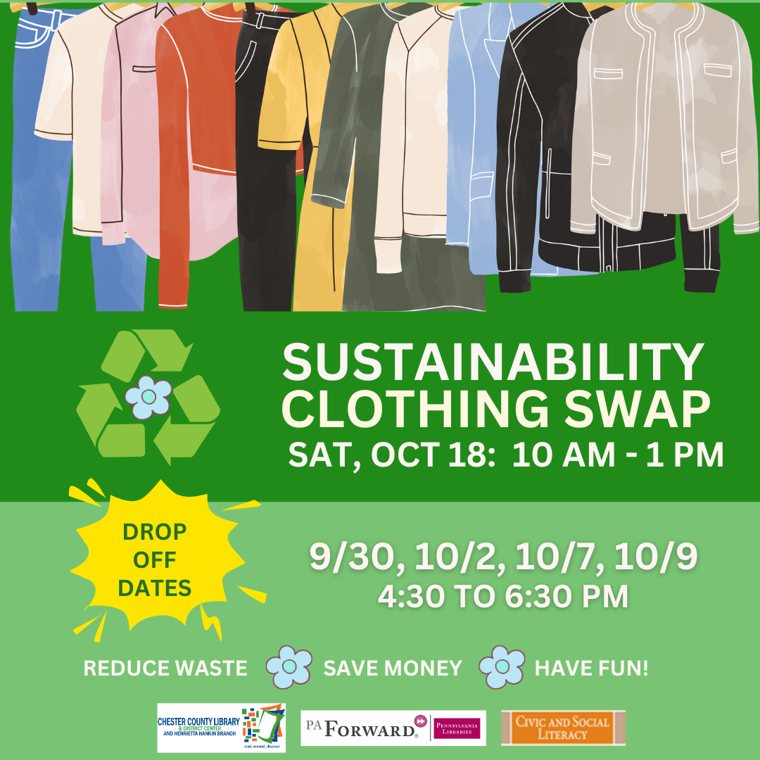 Our first ever Clothing Swap will take place on Saturday, October 18 from 10 am to 1 pm. Bring in up to 5 clothing items plus 1 accessory item on one of our drop-off dates, get your shopping tickets, then come to "swap" on October 18. Please note that to shop at the Swap you must have tickets.