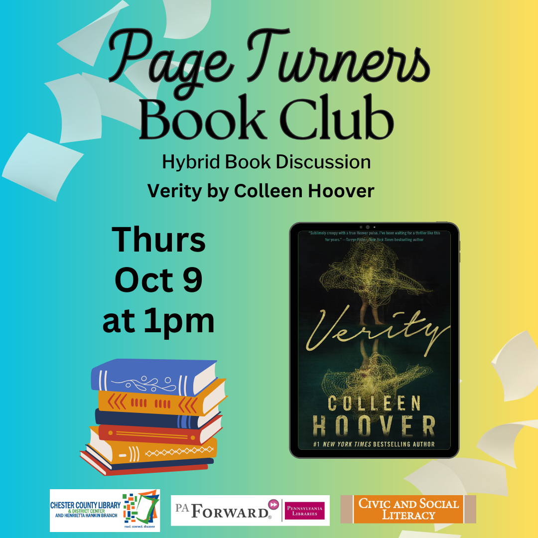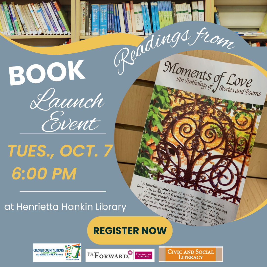 | | | | Upcoming Virtual Author Talks | | Chester County Library and Henrietta Hankin Branch are pleased to offer a virtual author talk series featuring bestselling, award-winning, and highly acclaimed authors. The featured writers and thought leaders cover various fiction and nonfiction genres. All events are free and open to the public. | | |