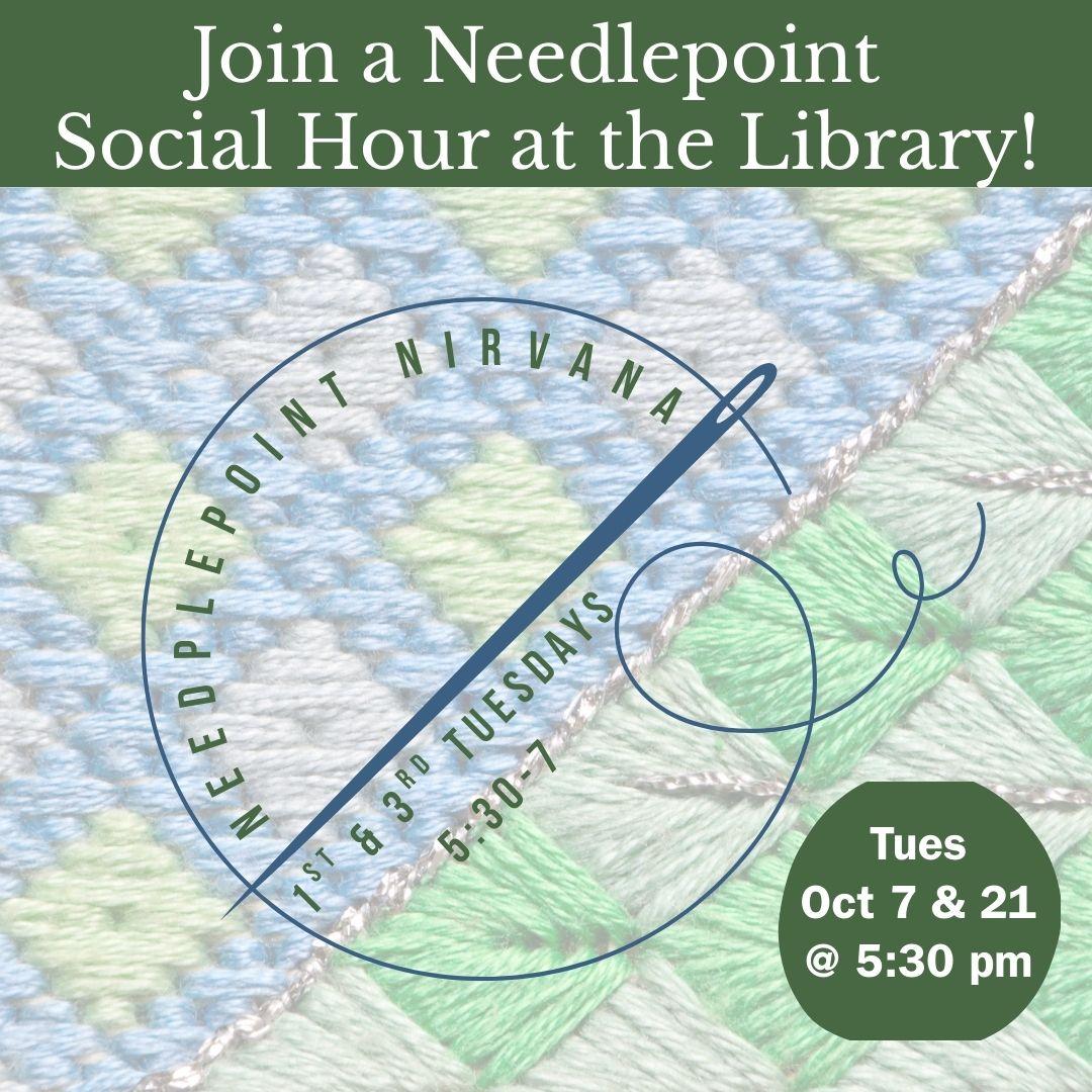 Join us on the 1st and 3rd Tuesdays of the month to work on your needlepoint project in the company of others!