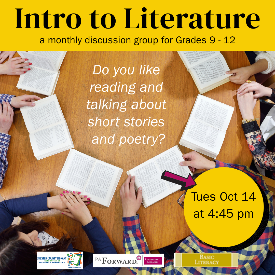 Do you like reading and talking about short stories and poetry? Join us for a monthly discussion group for Grades 9-12.