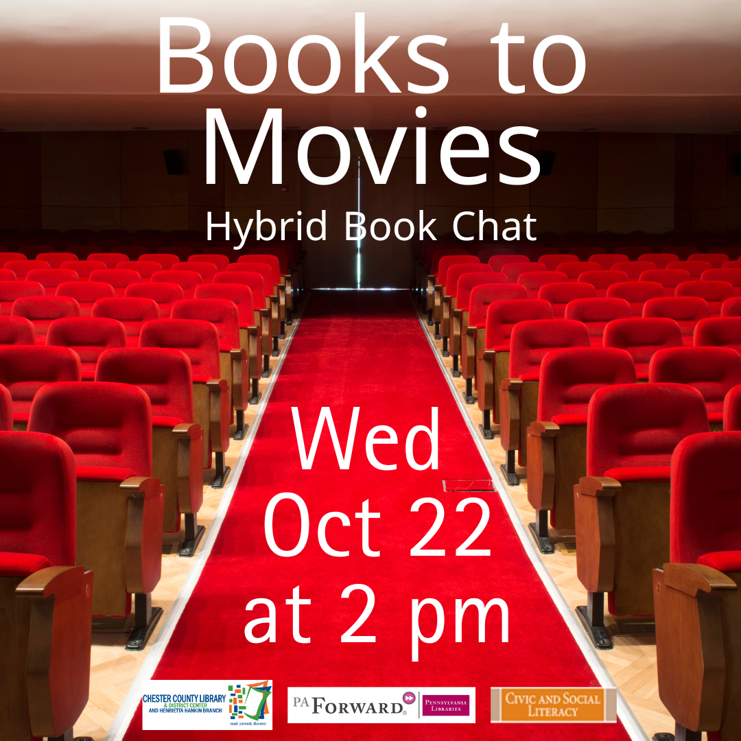 Please join us for a book chat featuring books that have been made into movies. All attendees will receive a PDF presentation with links to our catalog.