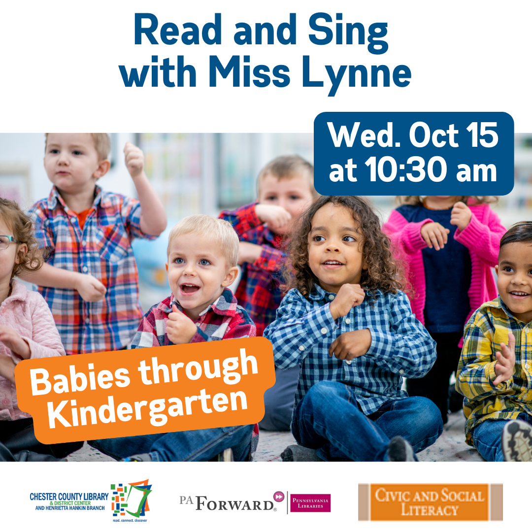 Join Miss Lynne, music therapist, from the Malvern School of Music, for a song filled story time. Books, songs and movement are all part of the fun. This program is for babies through kindergarten age children and their parents/caregivers.
