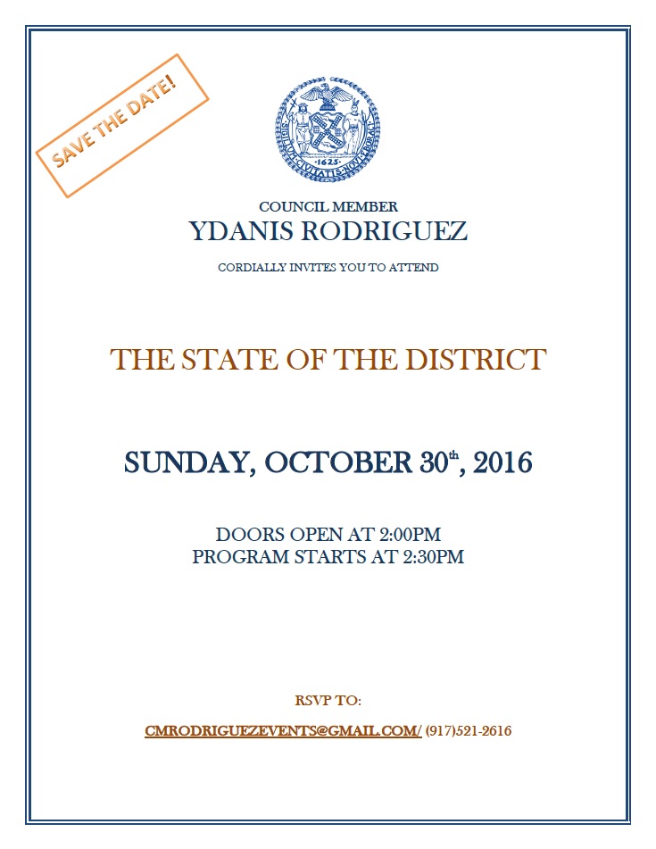 I am happy to announce that I will be hosting my annual State of the District address on Sunday, October 30th, at 2:00 PM. We will share more details soon but I wanted to be sure you save the date for this important and exciting event.