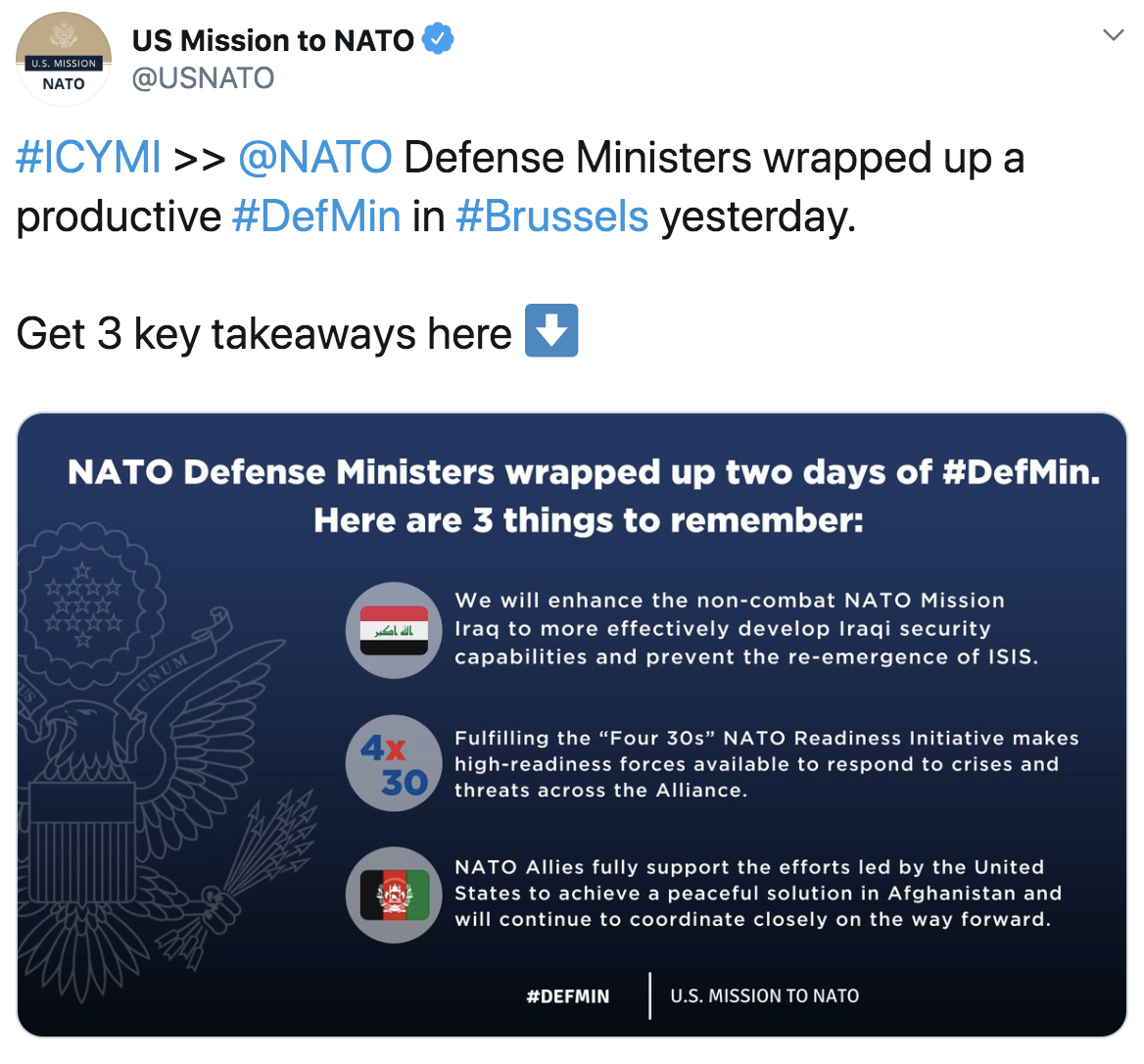 Defence ministers agree to enhance NATO’s training mission in Iraq