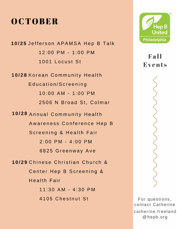 Hep B United Philadelphia (HBUP) delivered outreach to a wide population throughout the Philadelphia area providing screening, education, and training and outreach events. For the 2016-2017 year, HBUP reached a total of 854 individuals through 27 separate events, distributed a total of 664