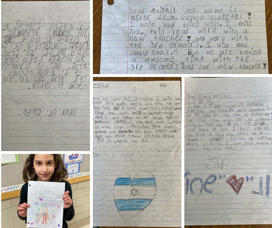 The most powerful moments of my week came when I watched our students creating posters to encourage us to give to the Federation's emergency fund, writing letters to elected officials, welcoming Israeli students to our community—and most of all, sending heartfelt letters to people in Israel. “You are not alone,” they wrote; “We are with you, we pray that you are safe, we remember you.” Their words created a world of support in a time of fear. Many grateful recipients replied within hours, some via email and some on video. As a sample, please see this video by Sophie Kruger, Schechter alumna and daughter of our current board chair. I urge you to have tissues at hand when you watch.