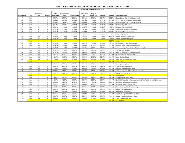 The Updated Finalized Schedule of State Marching Contest is attached. This shows the correct dates.